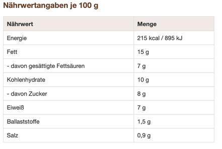 Der Feige-Wallnuss Frischkäse könnte Allergene wie Milchprodukte (Laktose, Milchallergie), Fruchtzucker (bei Fruktoseintoleranz) als auch Schalenfrüchte (Walnuss) enthalten.
